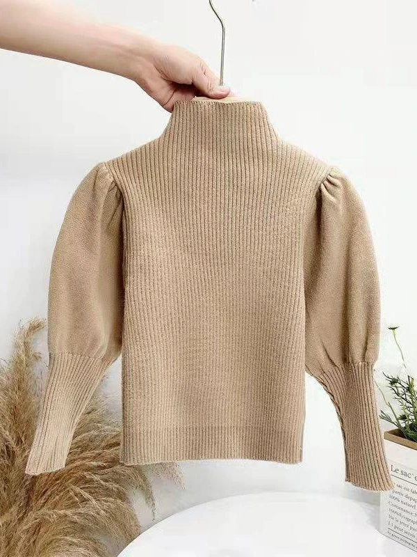 - Need something that goes with everything? Our turtleneck rib knit top is here to make matching easy! The puff sleeves add a touch of chic to this soft and cozy fabric. She’ll be dressed in a flash and fabulous to boot!