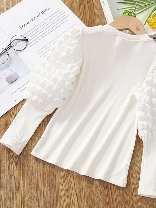 - A gorgeous girl just walked in the room wearing this adorable bubble sleeve top to show off her chic style. Make sure your little girl has one just like it in her closet this fall.