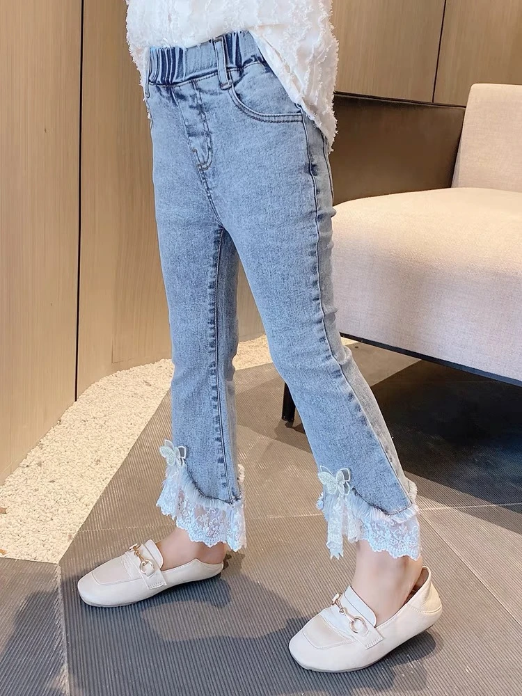 - An updated classic! Butterfly and lace hem details make these light-wash skinny jeans look oh-so-lovely. The perfect addition to your precious little girl’s Mia Belle collection.