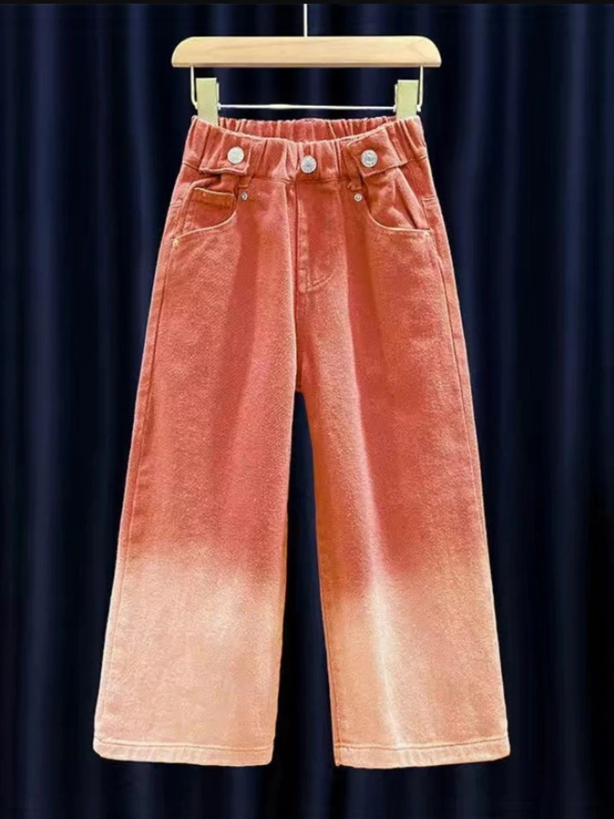 - Time to add color to her wardrobe! These ombre wide leg jeans are sure to brighten up your little girl’s looks with their gorgeous gradient color mix. She’ll be such a standout!