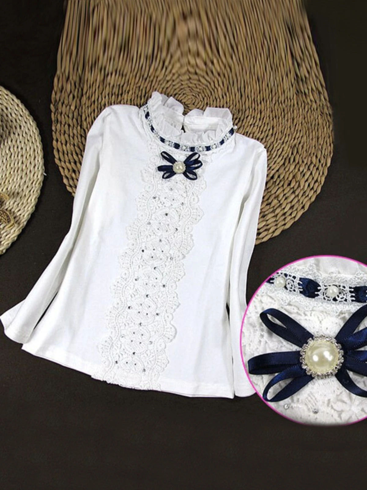 - When your little fashionista requires extra flair, this long-sleeve Western collar shirt will have her saddled up in style! Its crisp, gold-tipped collar, intricate lace bib details, and fashionable fit make this a grab-worthy piece. The perfect blend of country charm and modern chic!