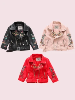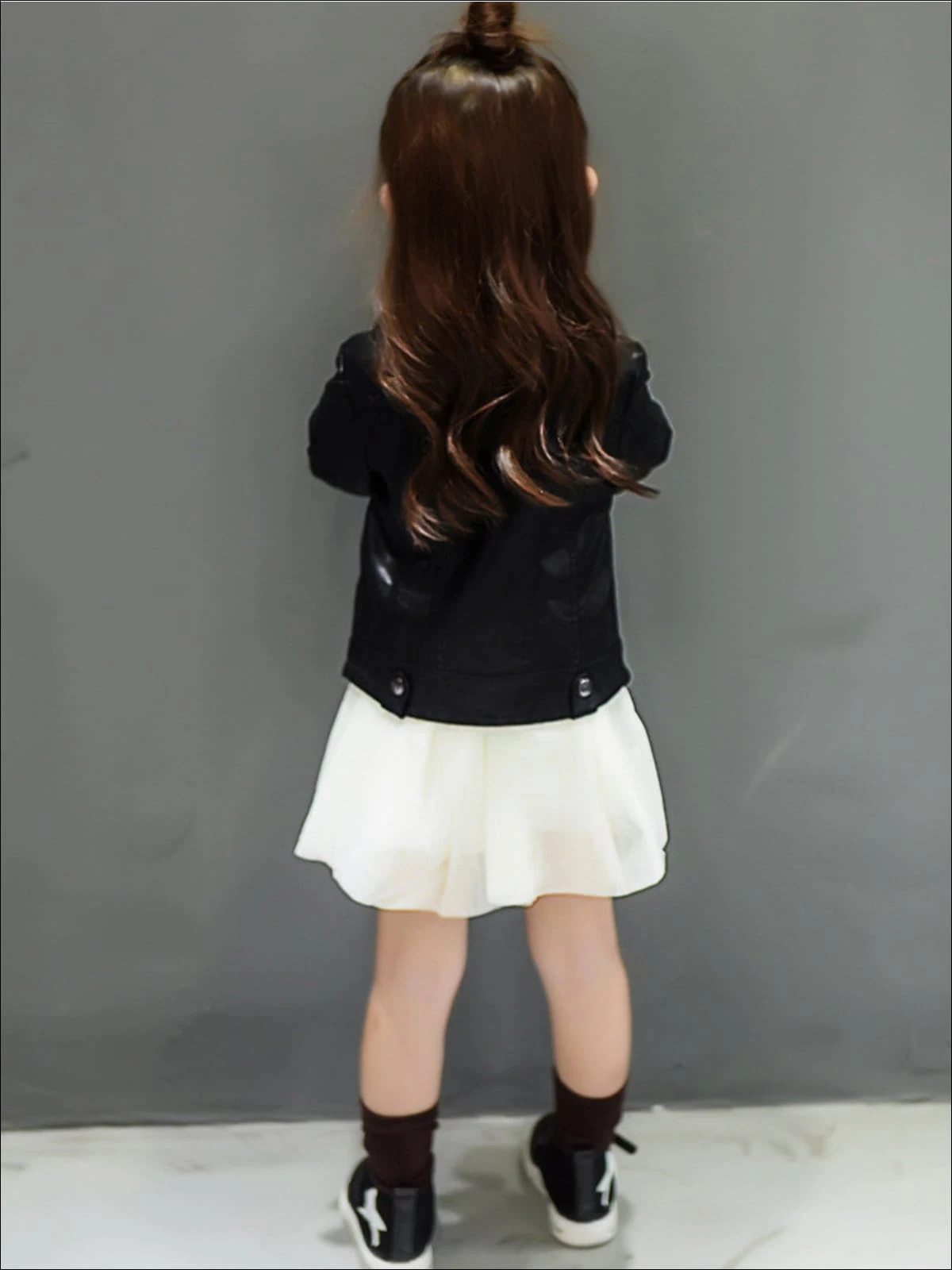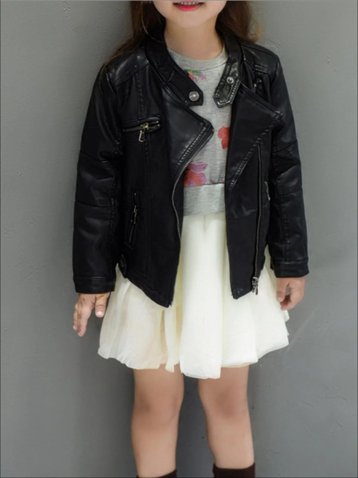 Add an edgy touch to her girly look with this synthetic leather moto jacket. This will be a staple in her fall/winter wardrobe.