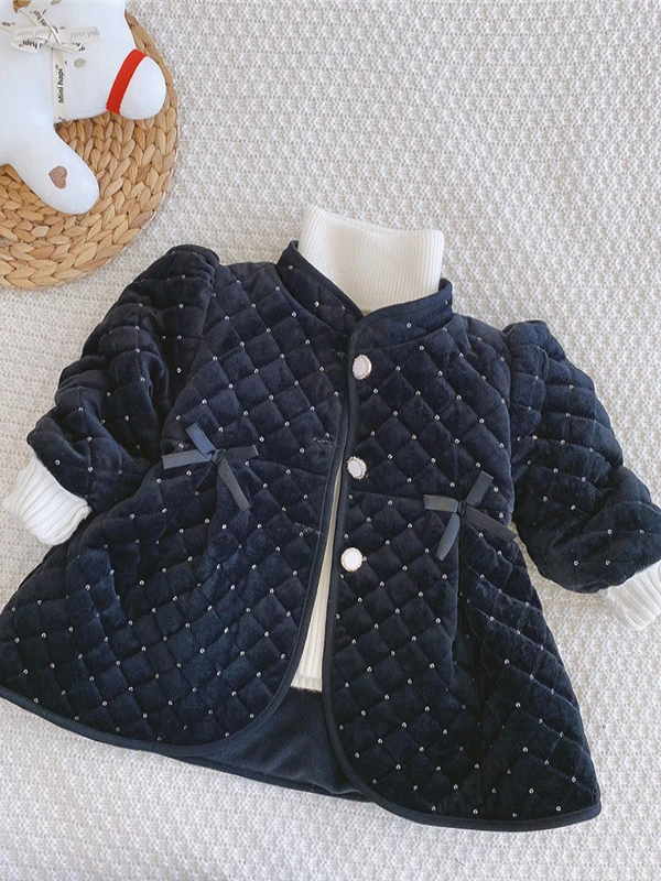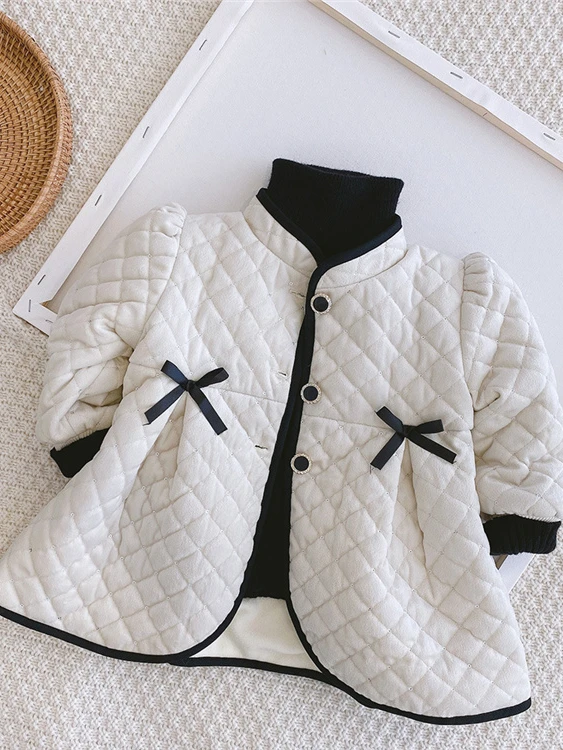 Looks like your sweet girl is ready for the cozy season. Layer this precious, sophisticated, quilted, button-down jacket with bow accents over her cutest dresses, leggings or favorite jeans for a effortlessly elegant and stylish look!
