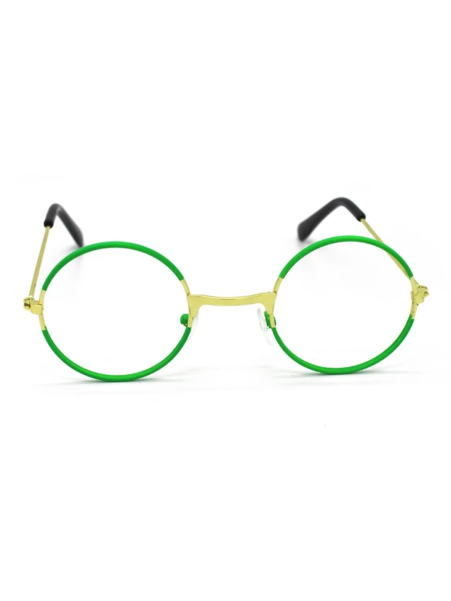 - Green framed glasses with gold handles and without lenses