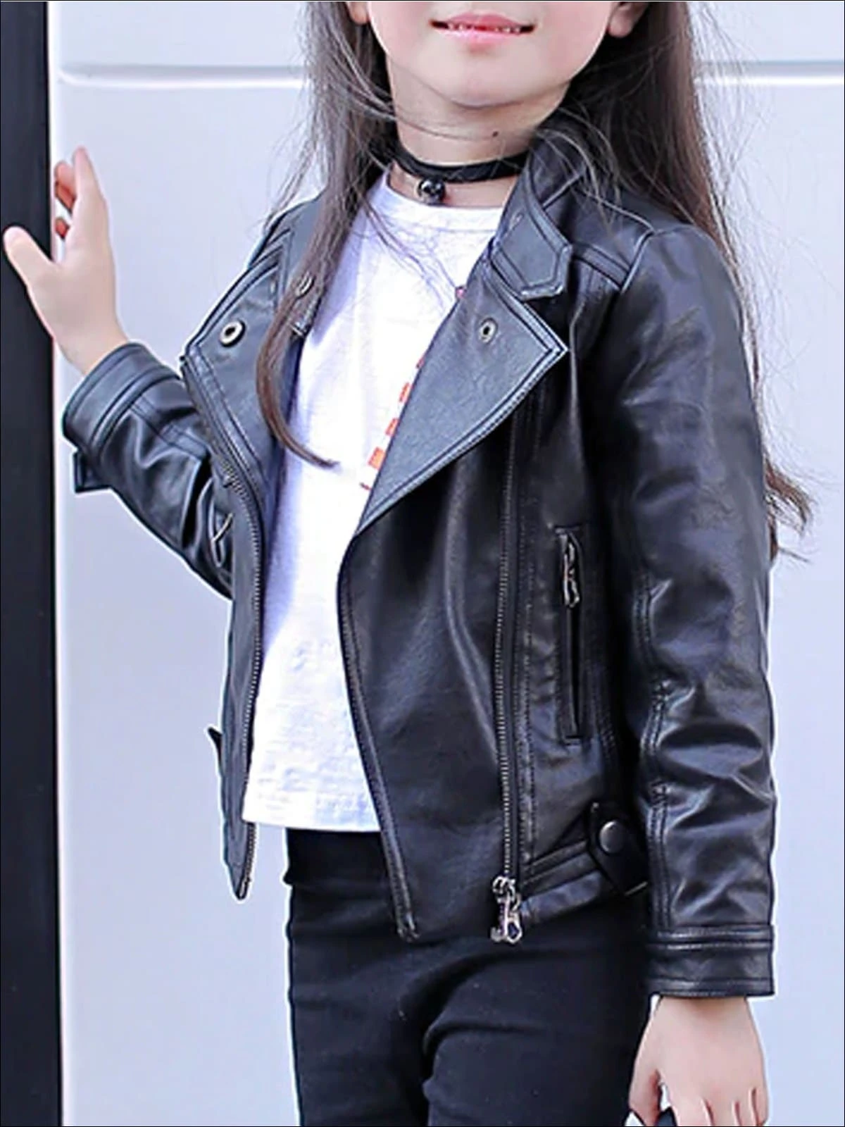 Add an edgy touch to her girly look with this synthetic leather moto jacket. This will be a staple in her fall/winter wardrobe.
