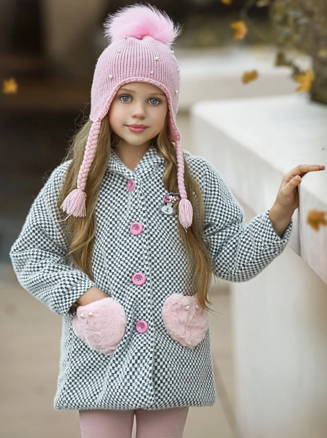 This adorable coat is the perfect outerwear piece for fall & winter. Goes great with casual & dressy apparel. Keep her warm and looking stylish with this super comfy coat with kitten applique on the back, the pockets allow her to keep those hands warm and snuggly on super cold days. Use the hoodie with playful ears for extra warmth