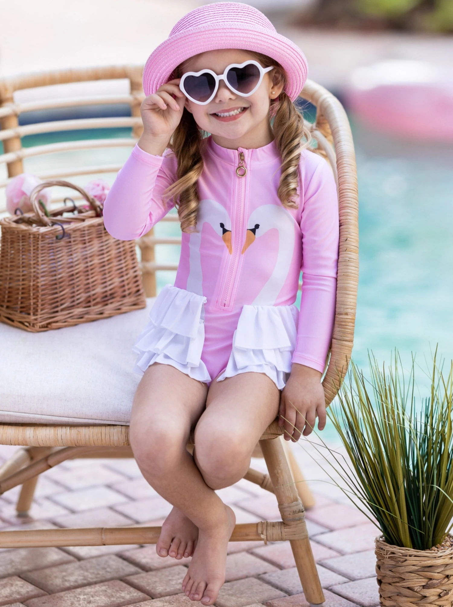 Your summer babe takes to style as a swan takes to water. So this Swan Lake rash guard long-sleeve one-piece swimsuit was made with her in mind. High-quality elastic spandex offers enough space for your growing cutie and the rash guard looks fancy while providing extra protection from the sun.