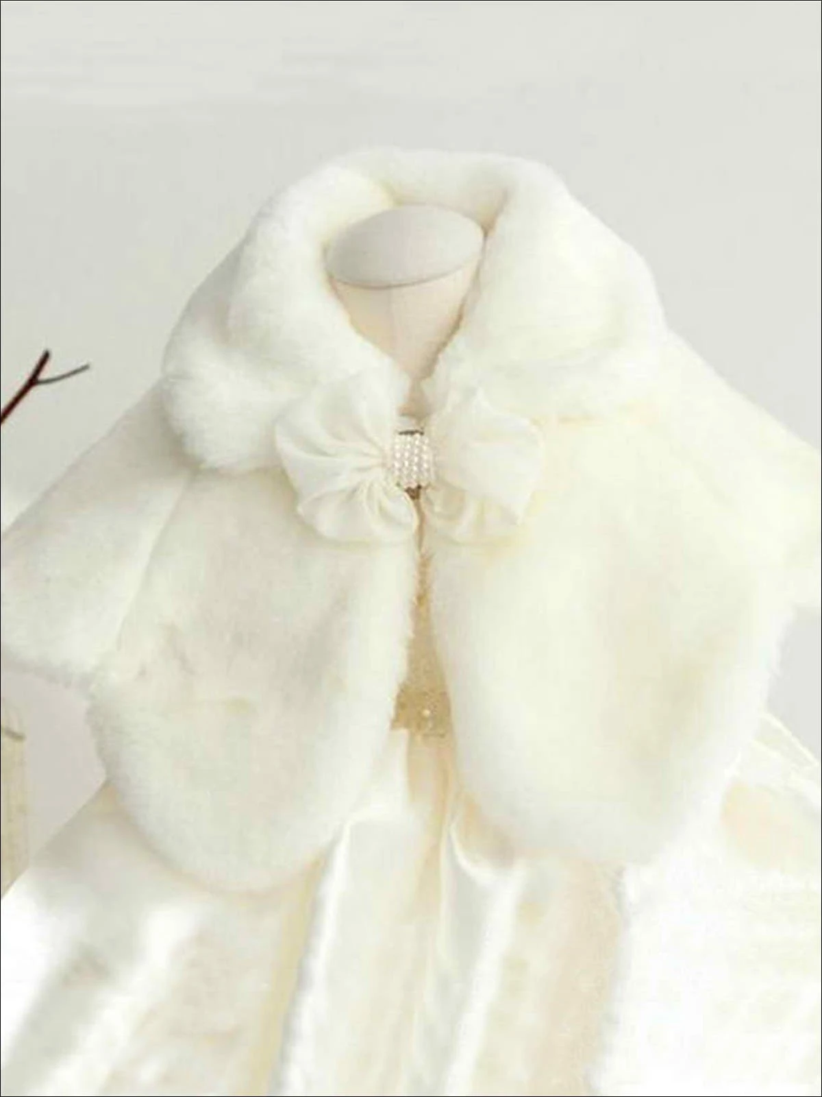 Every princess needs to keep warm! Layer this fluffy and warm bolero over her favorite dress or princess costume. Adorned with a beautiful bow.Â