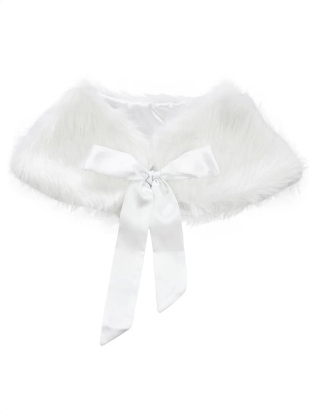 Every princess needs to keep warm! Layer this fluffy and warm bolero over her favorite dress or princess costume. Adorned with a beautiful satin bow.