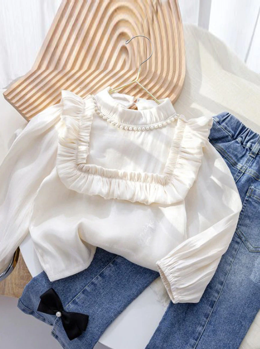 - An elevated staple for little fashionistas! This white long-sleeved ruffle blouse is too fabulous to not add to your cart. Guaranteed to add understated elegance to your little girl’s wardrobe.
