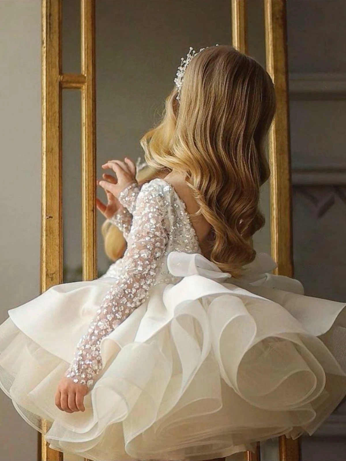 - Gorgeous girls deserve gorgeous gowns! Our backless tulle gown will make your little one feel like the most fabulous fashionista. With sparkly sequins all over, a v-back design, and the most stunning layered tulle skirt that’s topped with a statement bow, this dress will make her the star of the night!