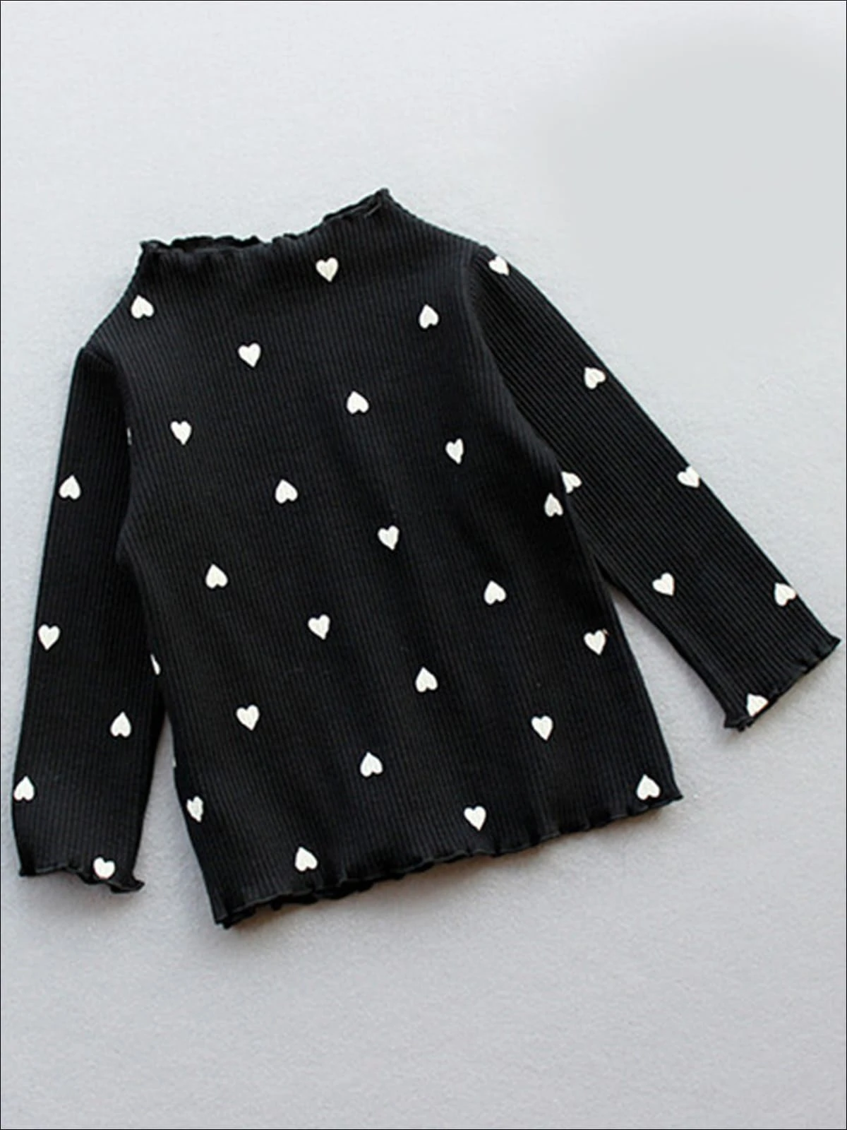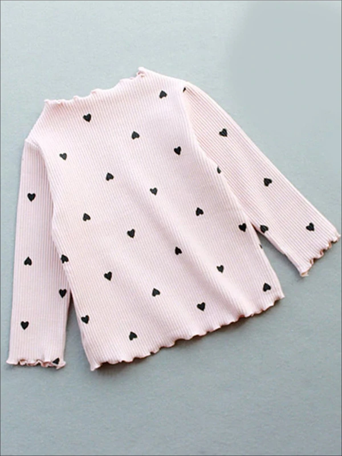 - Long-sleeve lettuce ruffle neck polka dot heart print sweater
