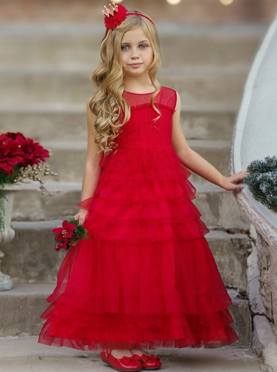 - Make sure your diva is red carpet ready with this adorably elegant ruched party dress. Layer after layer of tulle will look lovely as your little girl spins, twirls, and dances the night away!