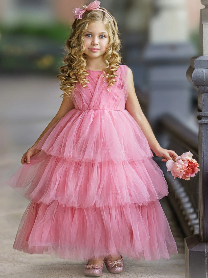- This holiday party dress is a complete show stopper from top to bottom! Covered in tulle, the cascade of ruffles is flowy and elegant, so your sweet little girl to twirl the night away!