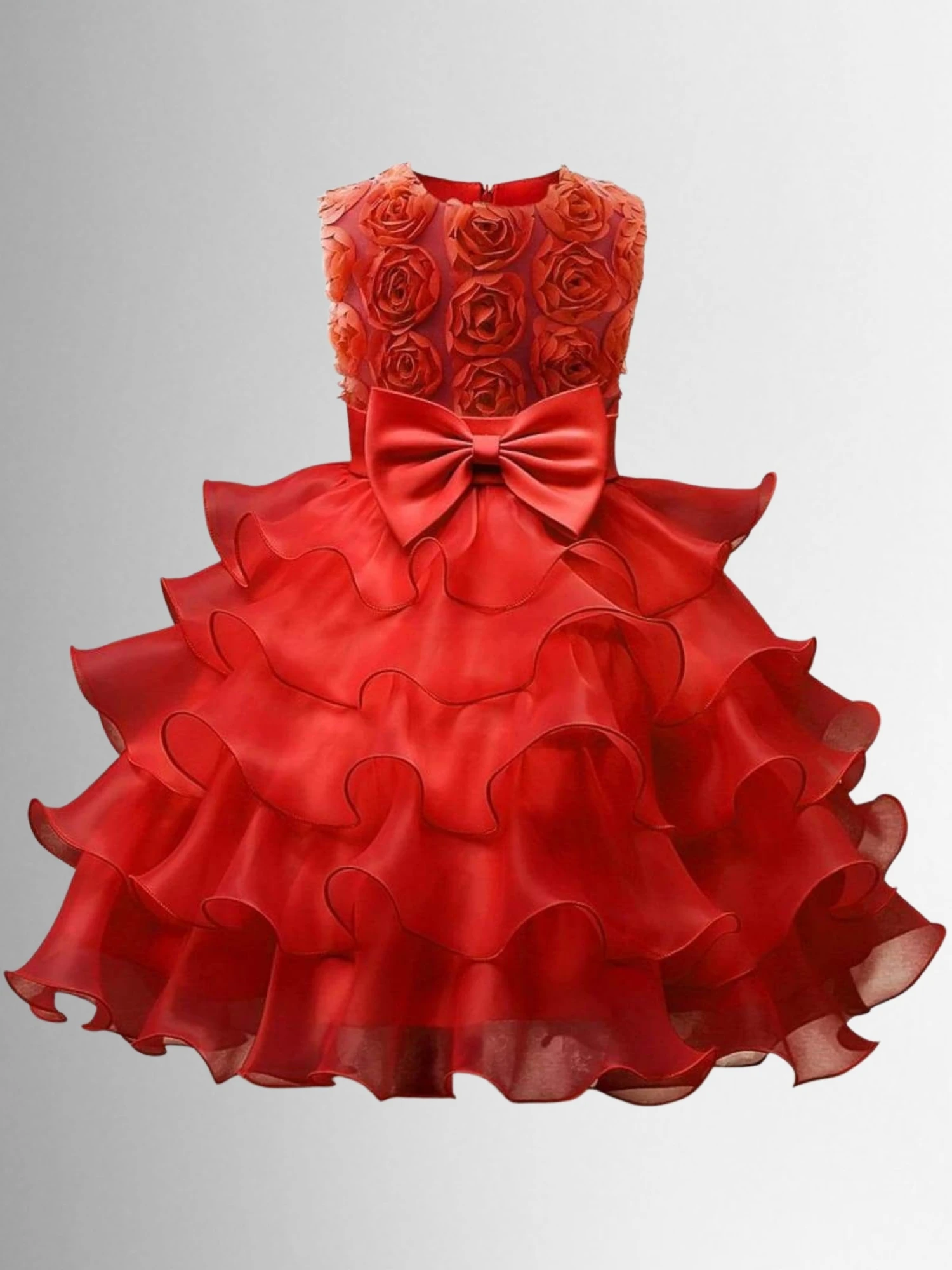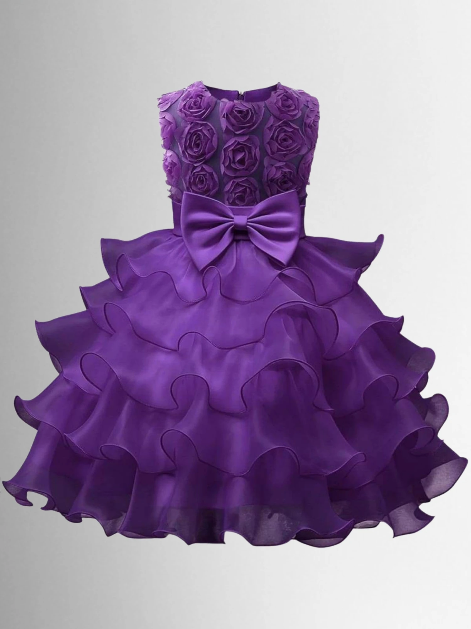 - Even the littlest girls deserve the best formal dresses available. Your princess will be the center of attention in this stunning ensemble! With beautiful 3D rosettes and a full ruffle skirt, this piece is perfect for a special occasion.