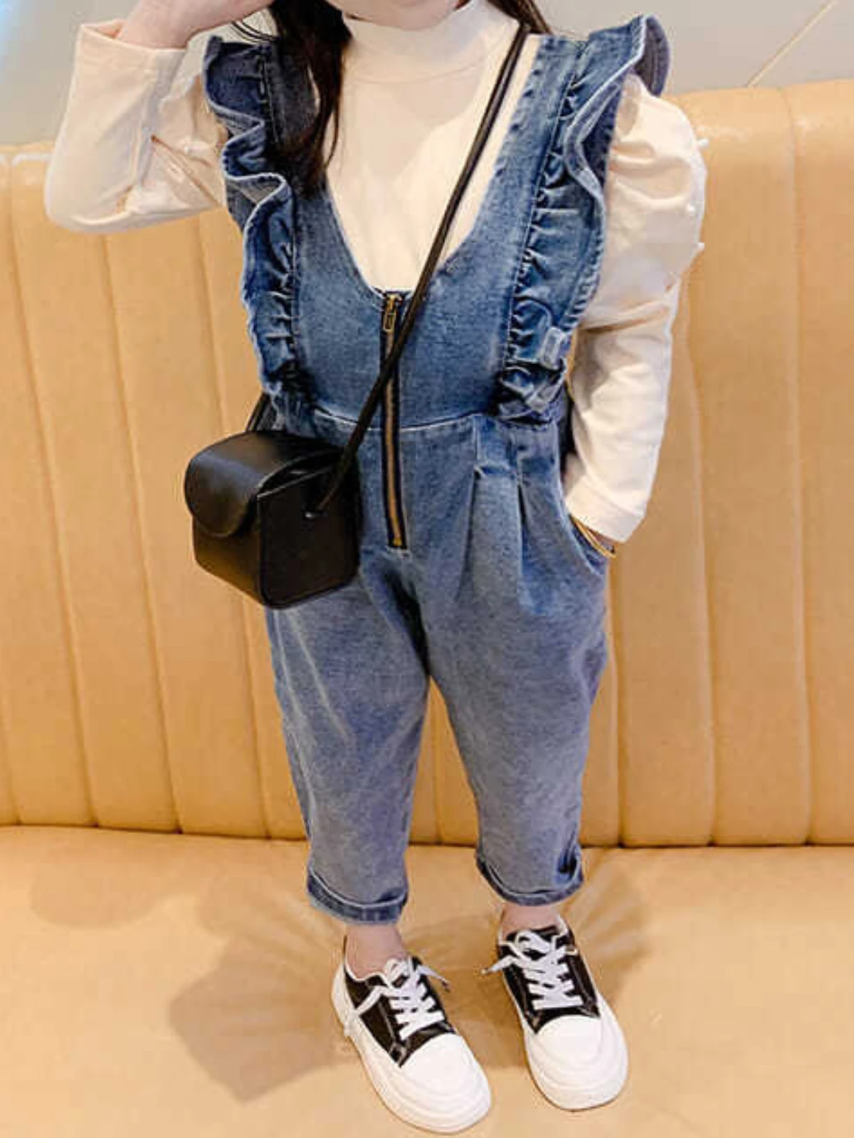 - Ready the fashion runways! Our ruffle denim overalls will have your little girl walking like a mini model. This fabulous piece features a flattering fit, a cuffed hem, and the prettiest ruffle details. A lovely addition to her denim collection!