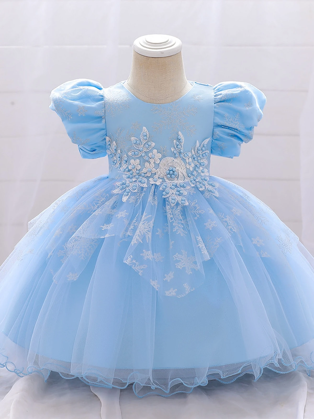 - Enchant her world with the lacey, embroidered princess dress of her dreams. The puff sleeves and sparkly snowflakes are straight out of a fairytale. Your little girl will be sure to steal the show no matter where this lovely holiday dress takes her.