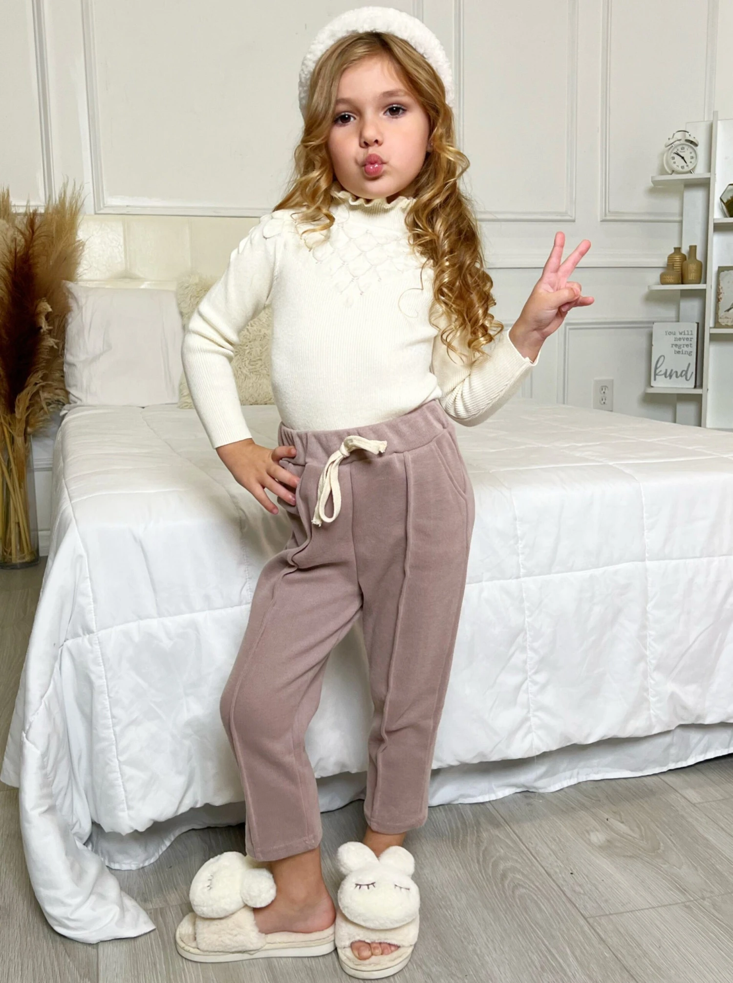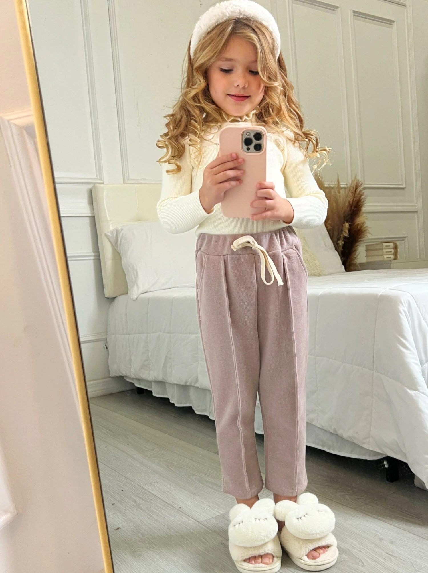 - Love loungewear? Your mini influencer will look so cool in these drawstring sweatpants. With a neutral khaki colorway, they are just the perfect pair to elevate her cozy day wardrobe.