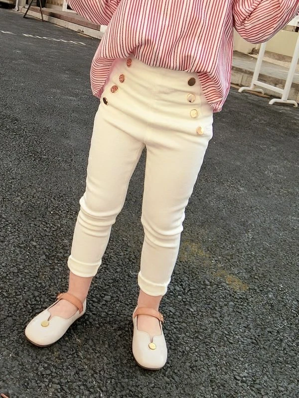 - Side button details elevate the look, while the stretchy fit makes sure your little can move, play, and enjoy her day freely.