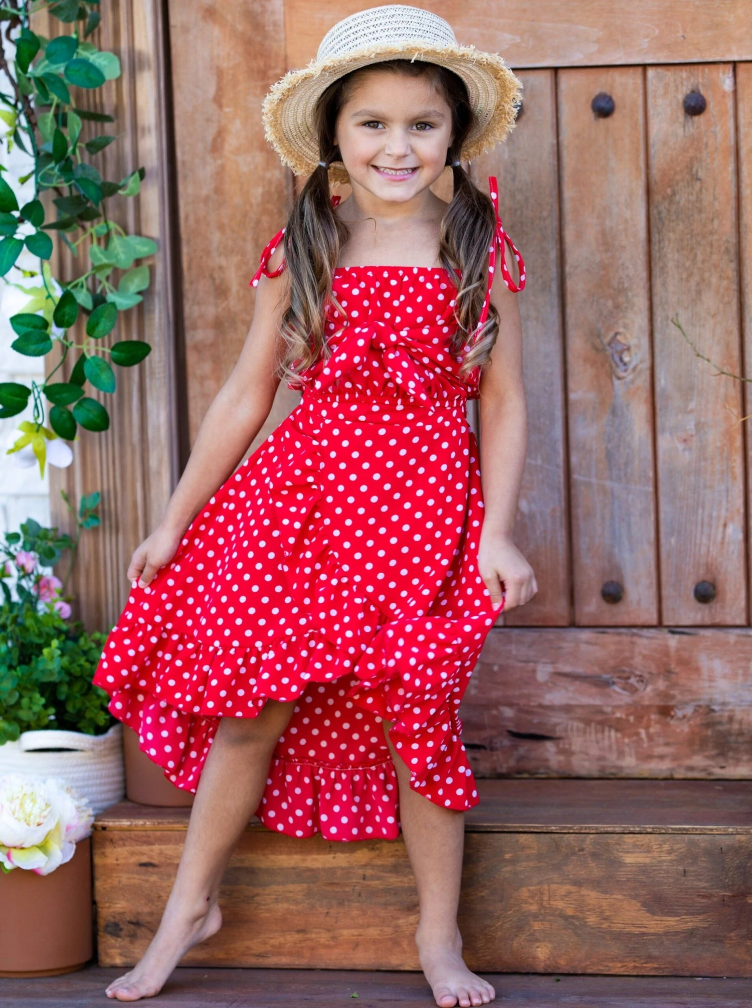 - Yes to fun and pretty dots for spring! Your sweet little girl deserves a style boost in this polka dot crop top and wrap skirt set. With a trendy style and a flattering fit, she’ll be walking around with extra confident strides in this lovely pairing.