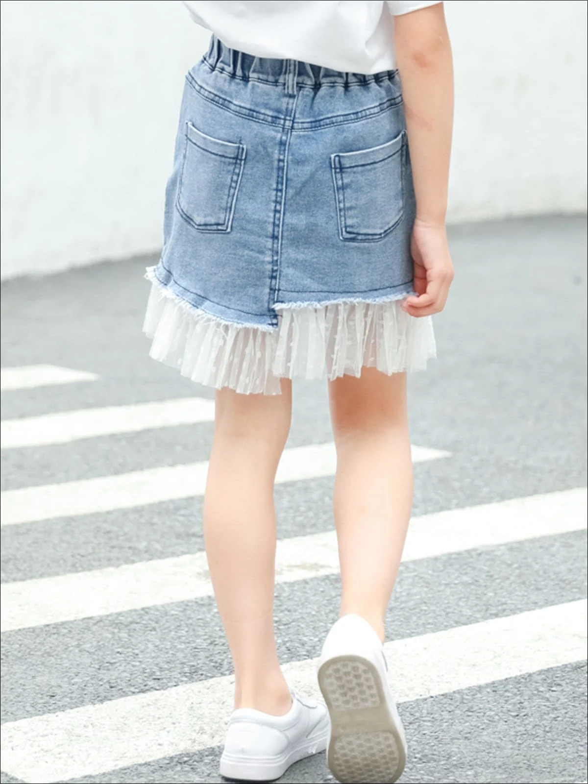 - Denim & lace make the most stunning combination. This denim skirt with lace hem detail is going to be perfect for her back-to-school basics.