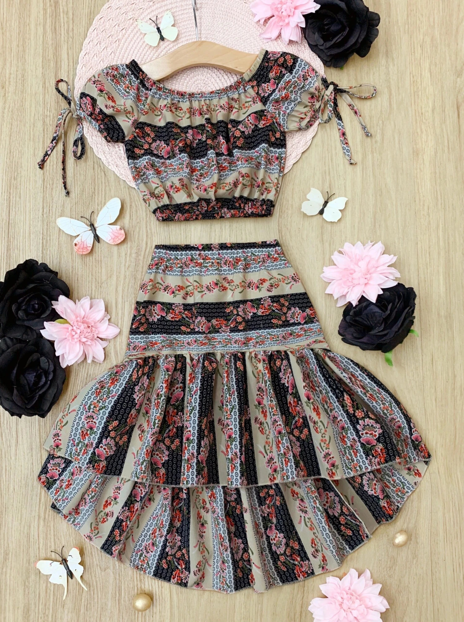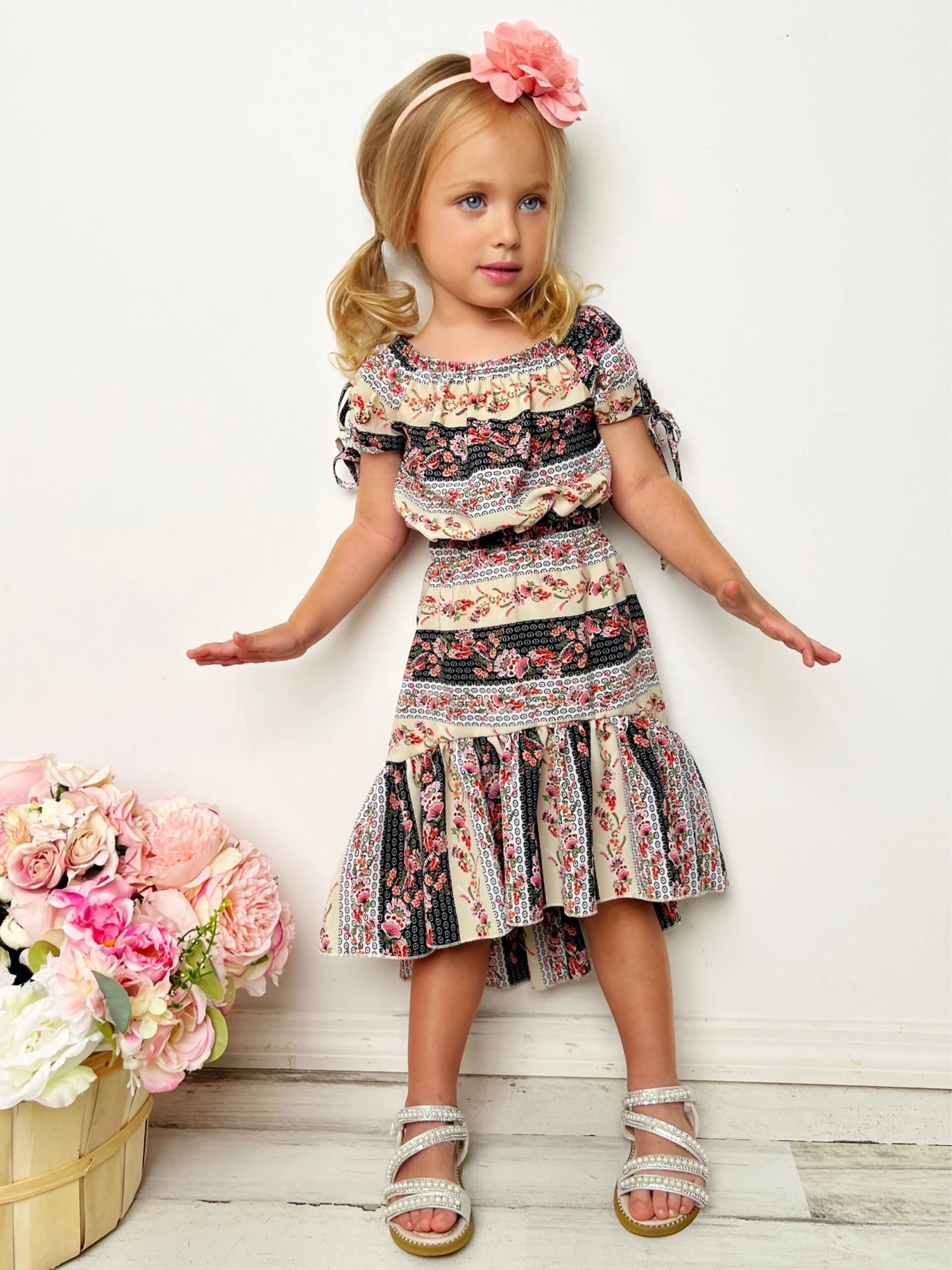 - Welcome spring in a whole new way with our patchwork skirt set. Super cute floral print covers this adorable outfit from short sleeves to hi-lo hem for a fun, flirty look she can wear anywhere! Make it even prettier with flats, sandals, and a sun hat for the best pictures of the year!